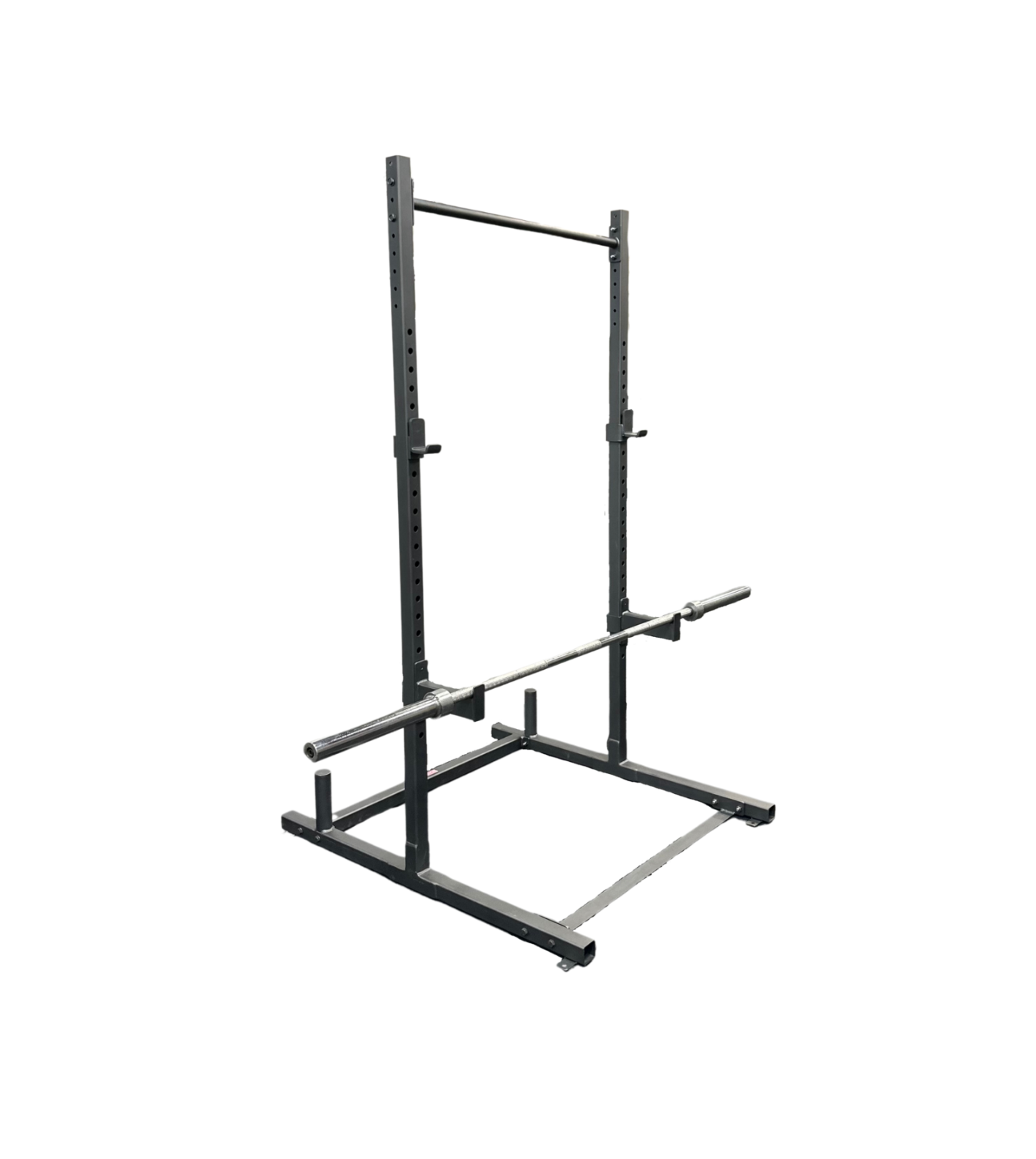 Unlock your fullest potential with this sturdy and balanced half rack that closes the space between quality and budget. Why settle for one when you can have both? Designed to push your glutes, thighs, hips, and legs, you will feel supported and safe with the built in spotter arms, and we aren’t stopping there! With the included pull up bar you can improve your overall body strength and fitness level. Making this piece of equipment a way to push yourself harder to become stronger.